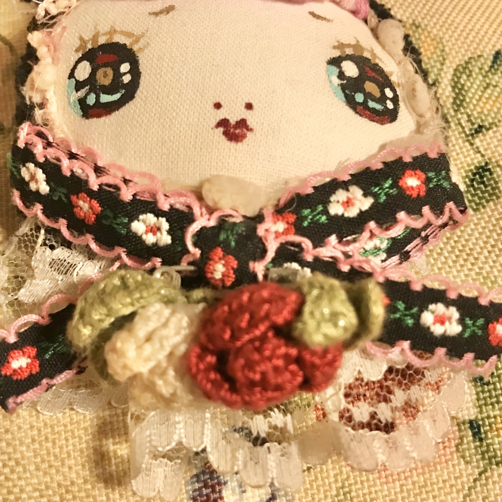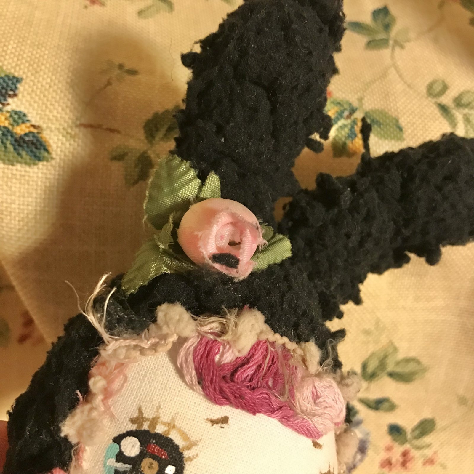 ※SALE※【USED】・文化人形風うさぎお顔ブローチ 黒