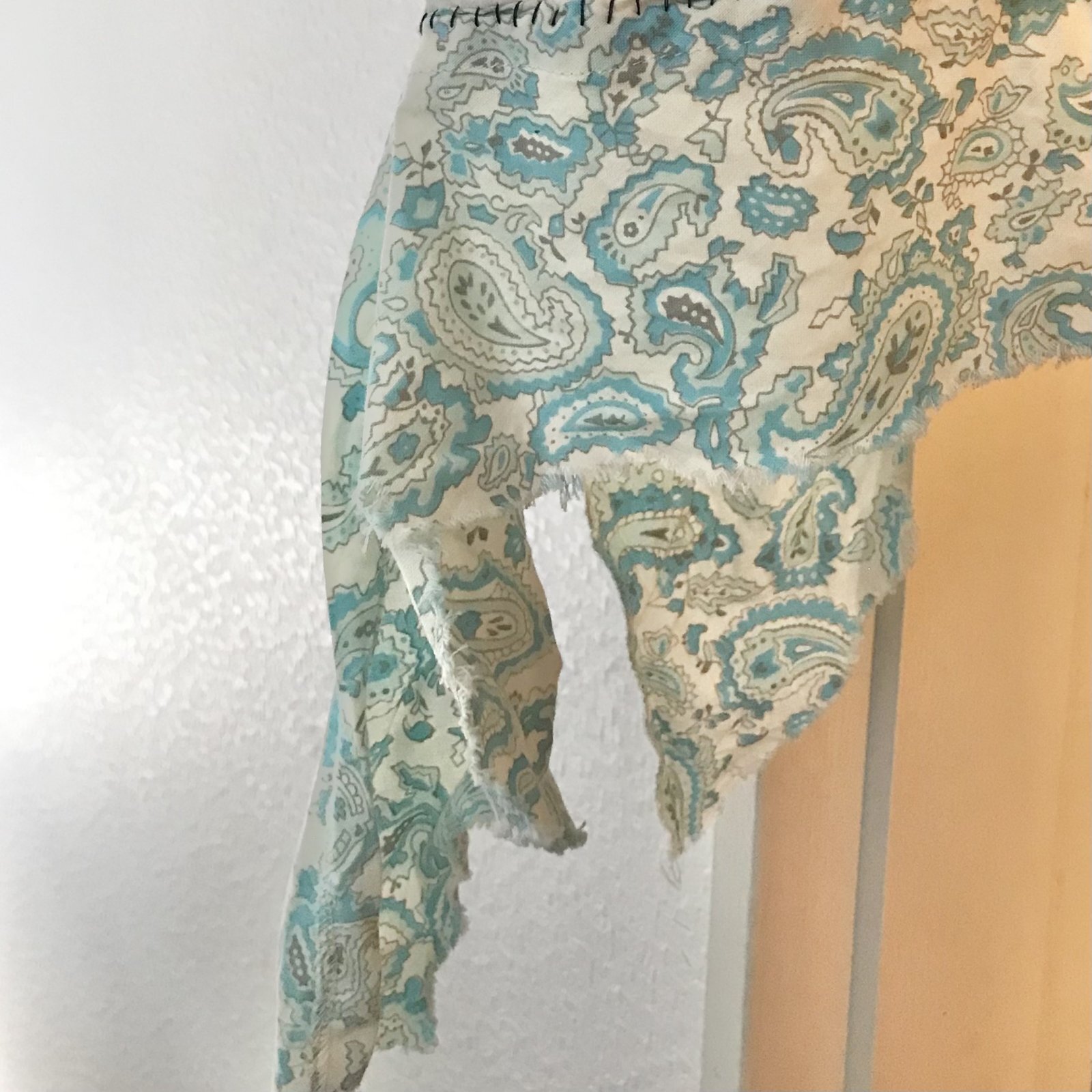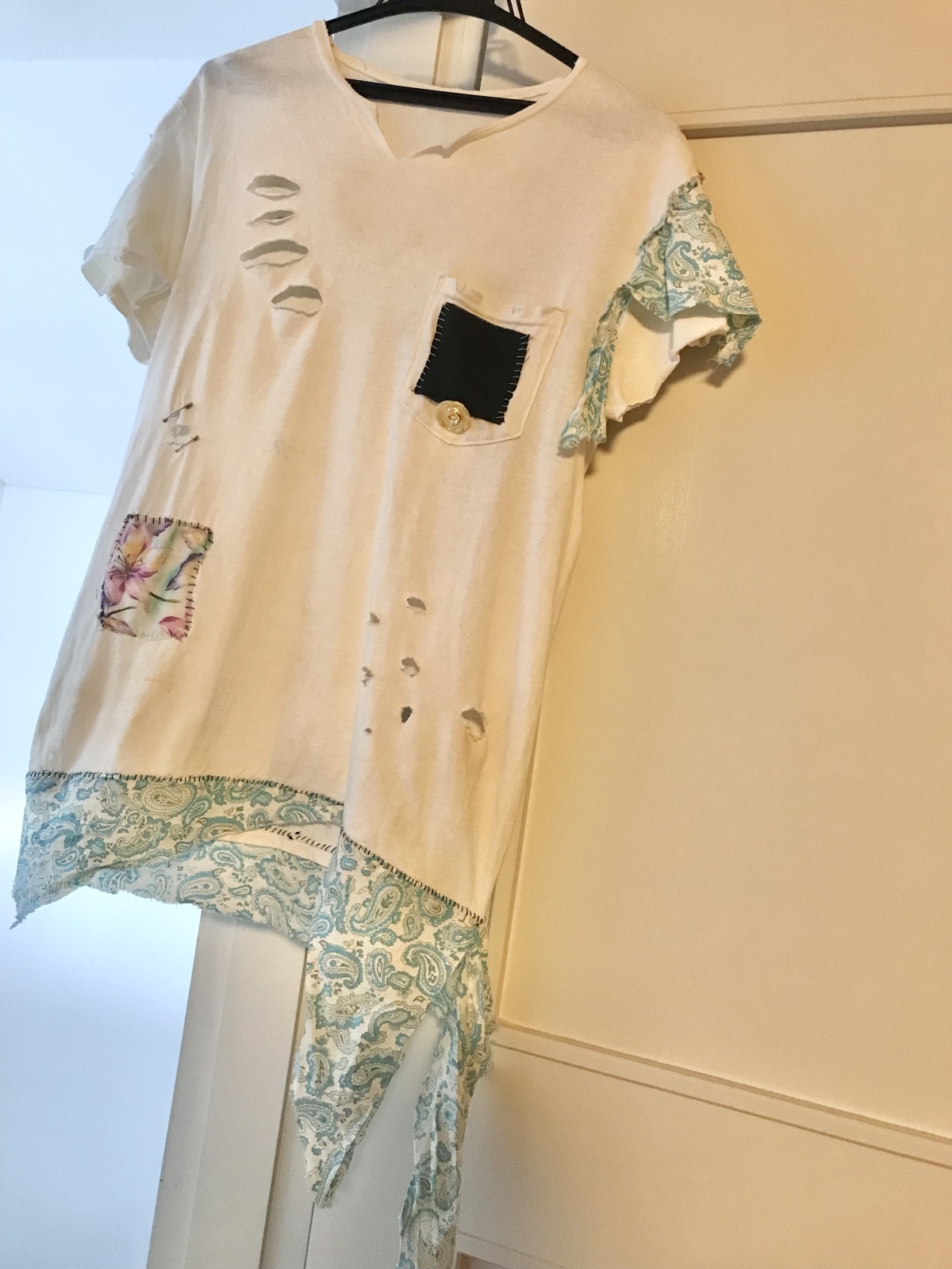 ダメージ加工、アシンメトリーな縫い付け