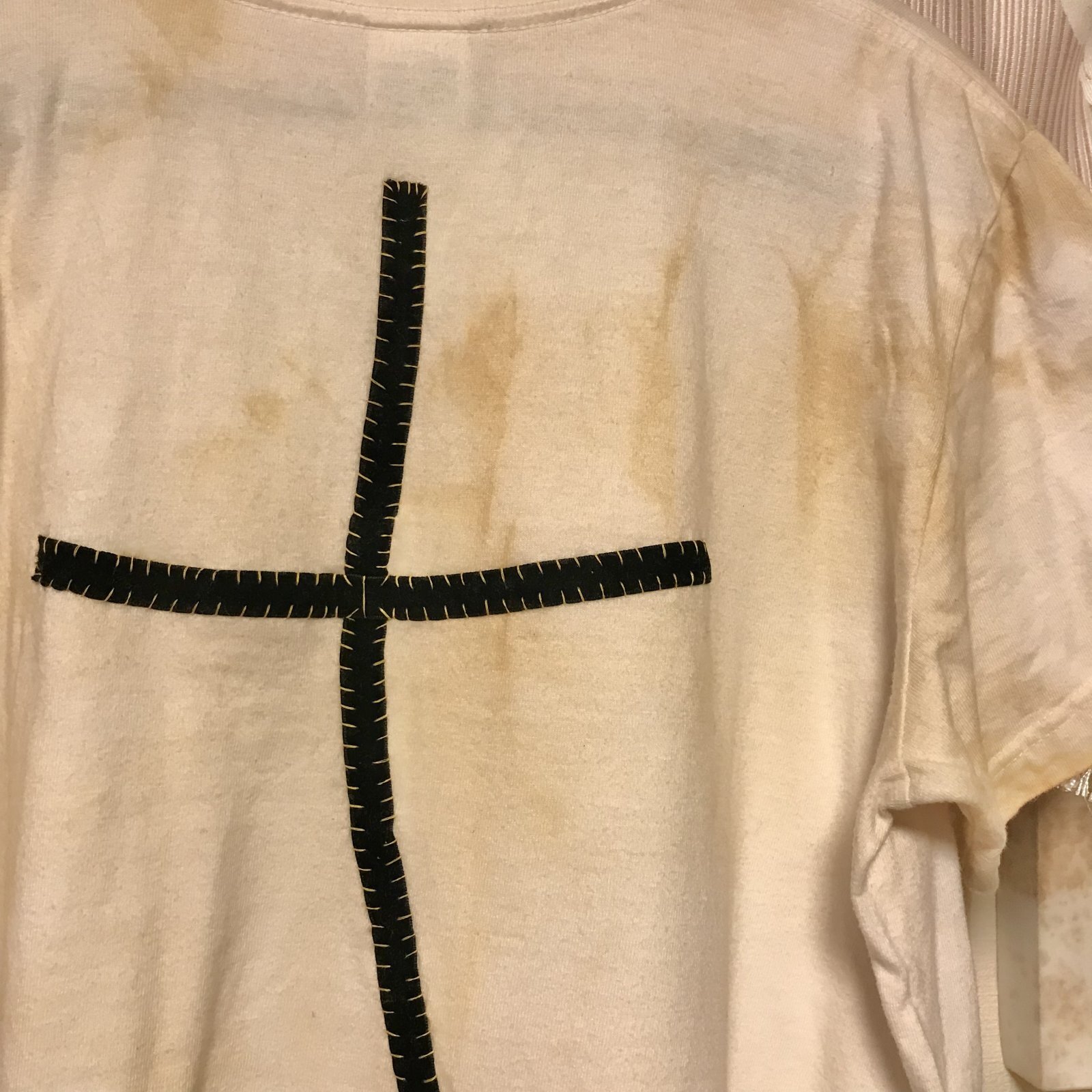 【夜の街燈 Street Lamp at Night】・退廃ムラ染め 安ピン十字架のリメイクTシャツ