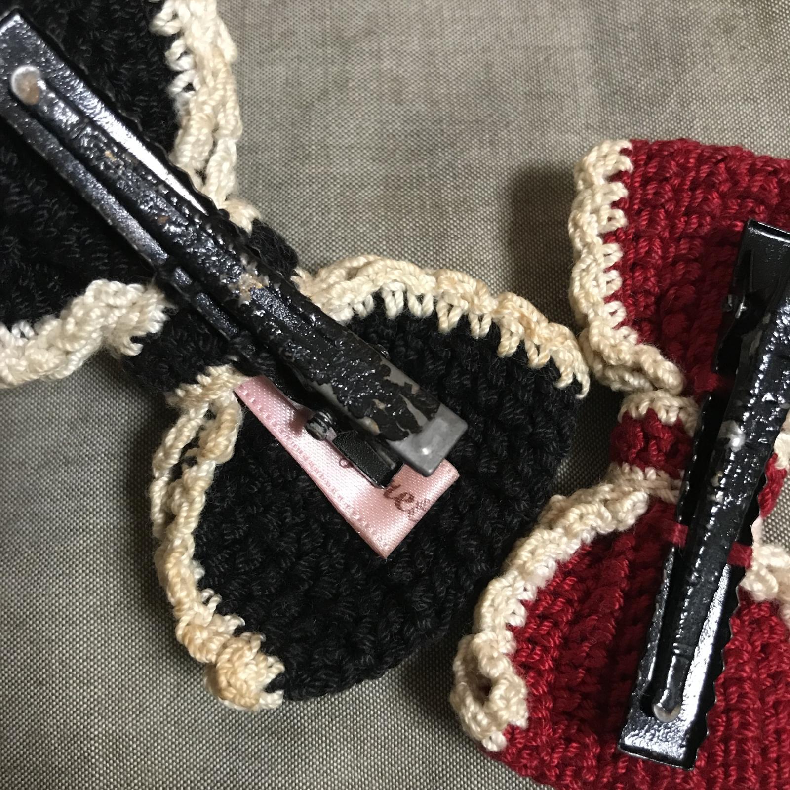 【USED】・クリエイターブランド/ニットリボンクリップ 黒&赤